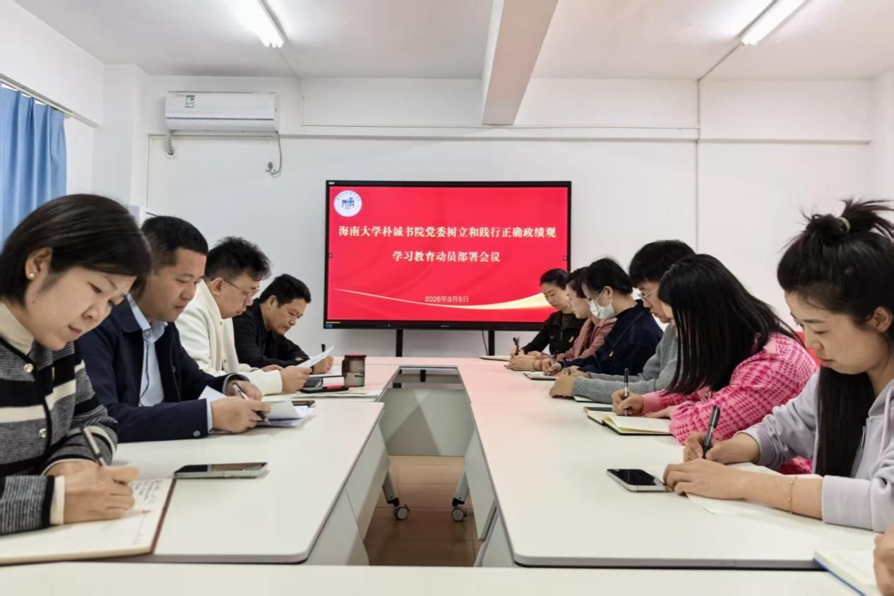 1903月 朴诚书院党委召开理论学习中心组2026年第6次学习会 1903月 海南大学朴诚书院党委召开树立和践行正确政绩观学习教育学查改工作部署会 1903月 朴诚书院党委召开理论学习中心组2026年第5次学习会 1703月 以心暖行,护航成长路——朴诚书院学生会开展“我为同学做实事”系列活动