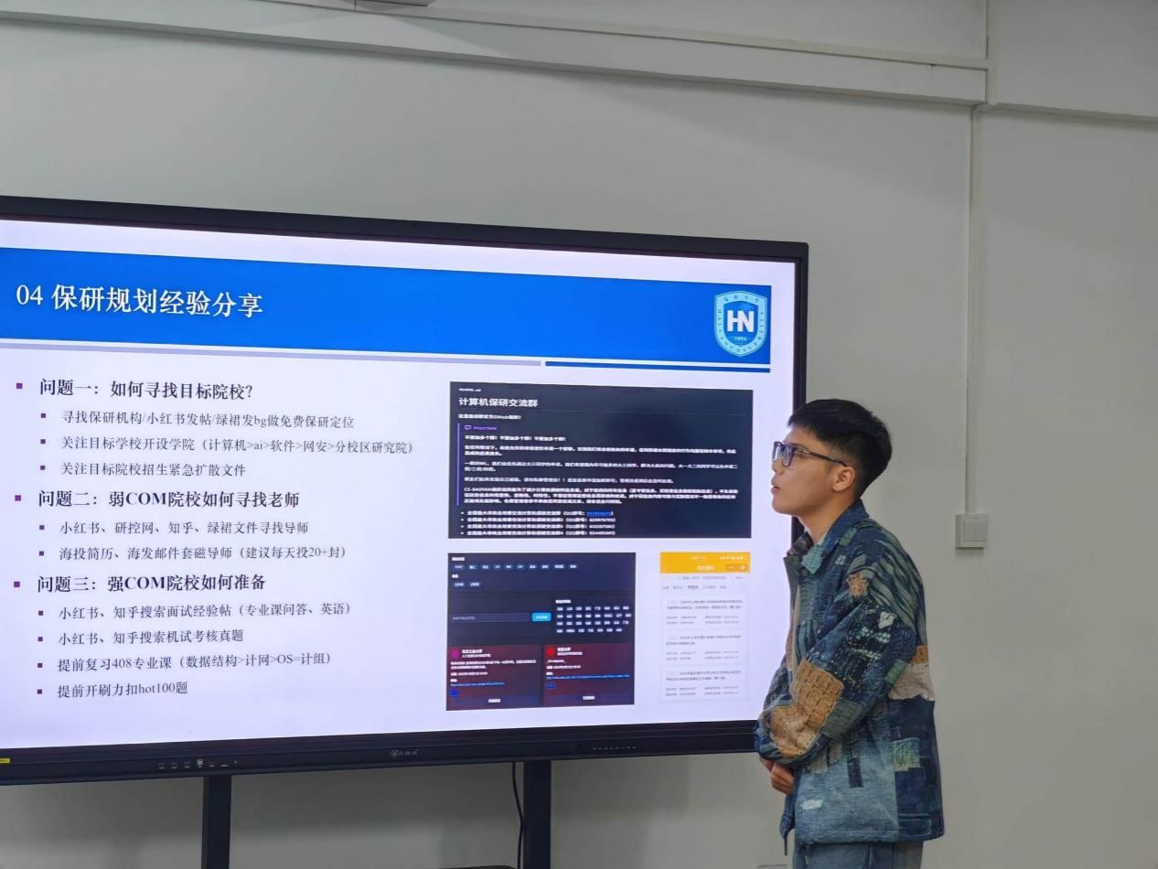 计算机科学与技术学院2022级学生朱家敏结合自身保研时的目标规划经历,提醒同学们要主动借助导师的专业指导、学长姐的经验分享等“外力资源”从容应对各类挑战。