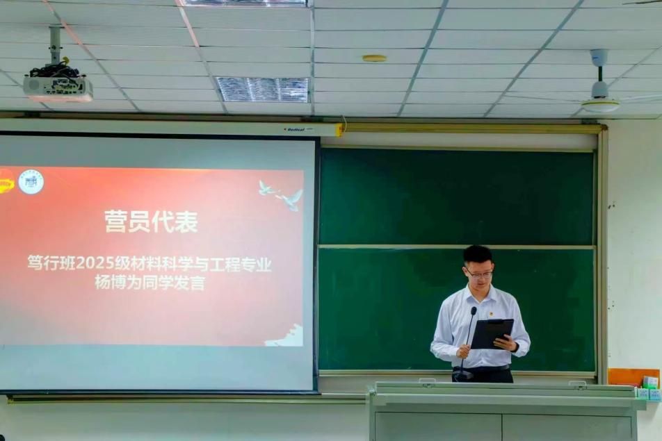 2025年11月1日上午,朴诚书院在7-201教室举办2025年“先锋砺能”素质训练营(第1期)开营式暨首场报告会。朴诚书院党委书记易振、学工办(团委)主任(书记)张红运、辅导员冯春莹和全体营员参加开营式,开营式由朴诚书院团委副书记(学生)闫申裕主持。