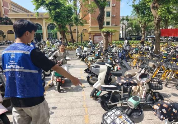 志愿者们还细致地维护现场秩序,及时扶正歪倒车辆,规整错位车头。他们用实际行动践行志愿服务精神,有效保障了第六食堂周边区域的交通安全和停车秩序,切实减少了因车辆无序停放带来的通行阻碍与安全隐患。