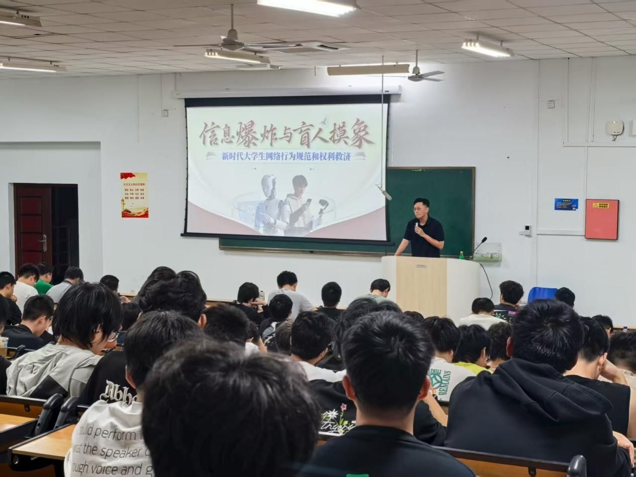 郑志涛从高校网络纠纷的实例切入,以鲜活的案例、生动的讲解和专业的知识,逐步分析“信息如何爆炸”“爆炸如何致盲”“盲人如何摸象”。讲座清晰呈现了网络的法治化进程,明确了学生们应承担的网络义务,对同学们理性用网、依法上网提出了建议。