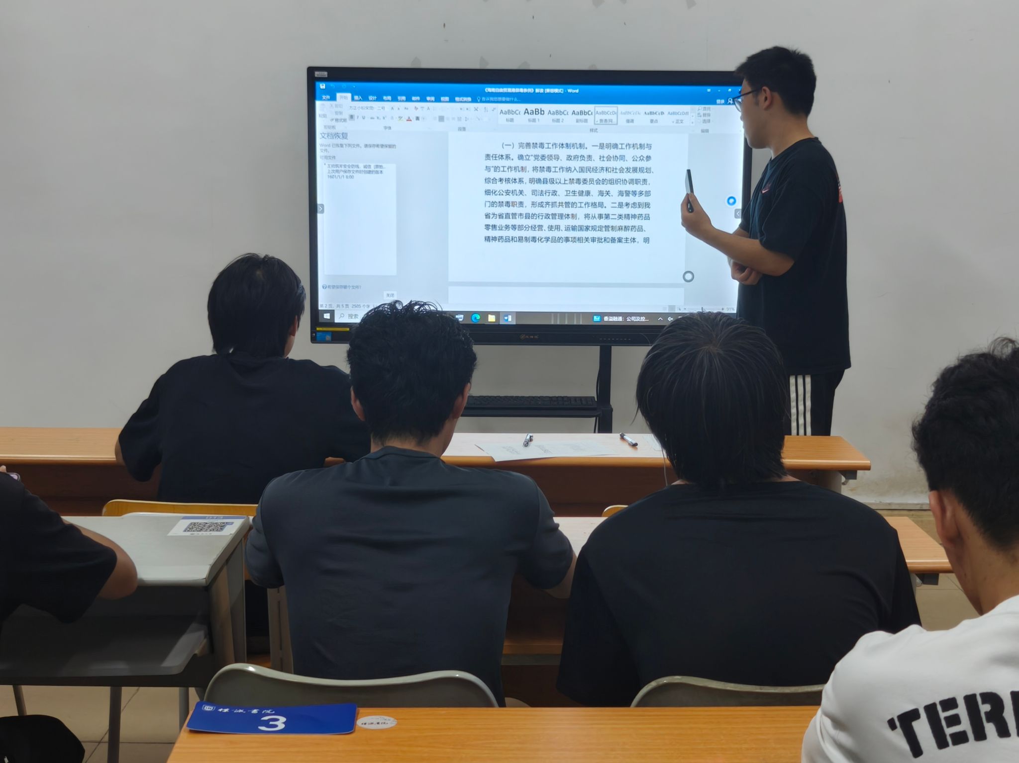 朴诚书院自管会活动负责人汤鹏飞,通过PPT宣讲和条例解读,细致讲解《海南自由贸易港禁毒条例》核心内容,结合自贸港禁毒工作要求,用通俗语言普及法律知识,明晰禁毒责任。